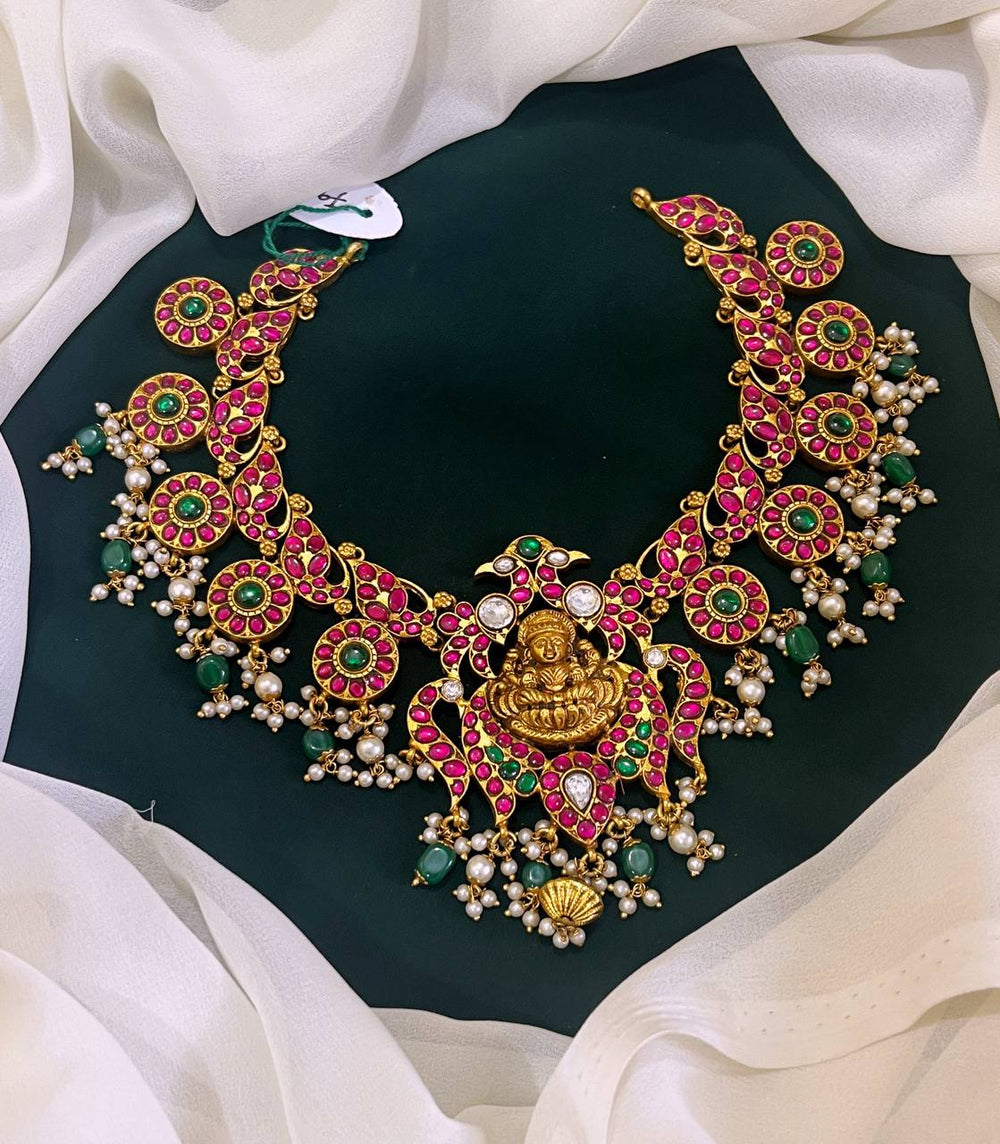Elevate your accessory collection with this exquisite Lord Lakshmi in Bottumala necklace in Jadav Kundan with Earring adorned with intricate JADAV KUNDAN workmanship. This stunning piece combines elegance and tradition, making it a perfect addition to any outfit, whether for a special occasion or everyday wear.