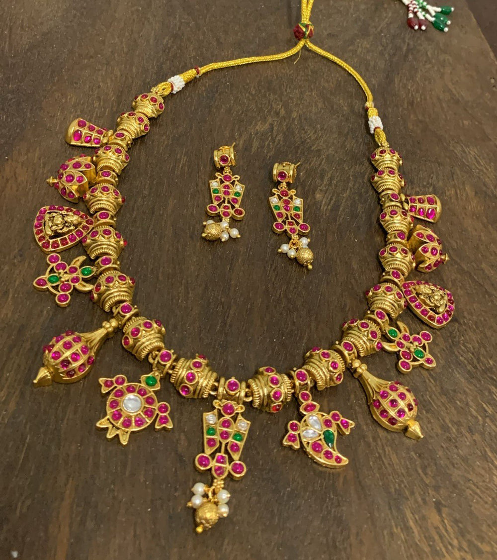 This exquisite Lord Venkateswara symbol necklace crafted in Kundan captures divine elegance and spiritual significance. Its intricate design reflects traditional artistry, making it a meaningful accessory for those seeking devotion and style. Perfect for special occasions or daily wear, it connects you with sacred tradition while enhancing your look with timeless charm.