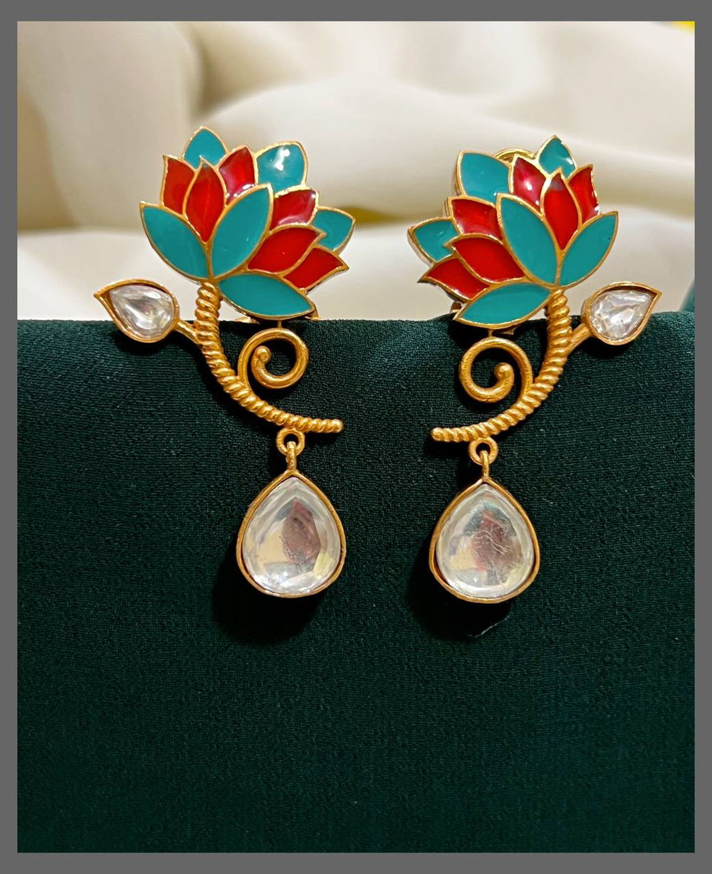 Elevate your style with the Lotus Earring in Kundan design, a delicate blend of classic elegance and timeless craftsmanship. This earring captures the serene beauty of the lotus flower, perfect for adding a refined touch to any outfit. Comfortable to wear and versatile for both everyday and special occasions, it invites you to embrace grace and confidence with every look.