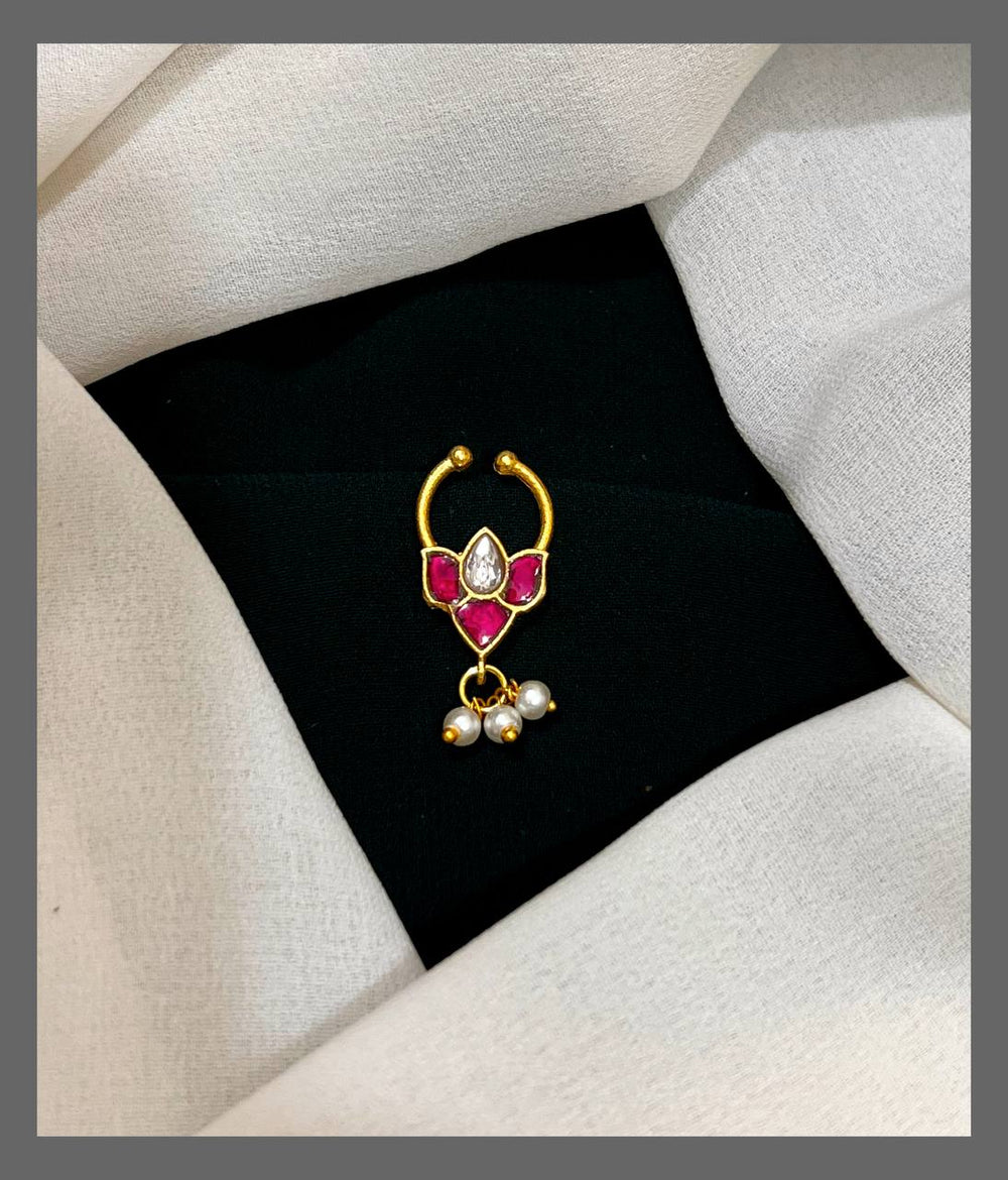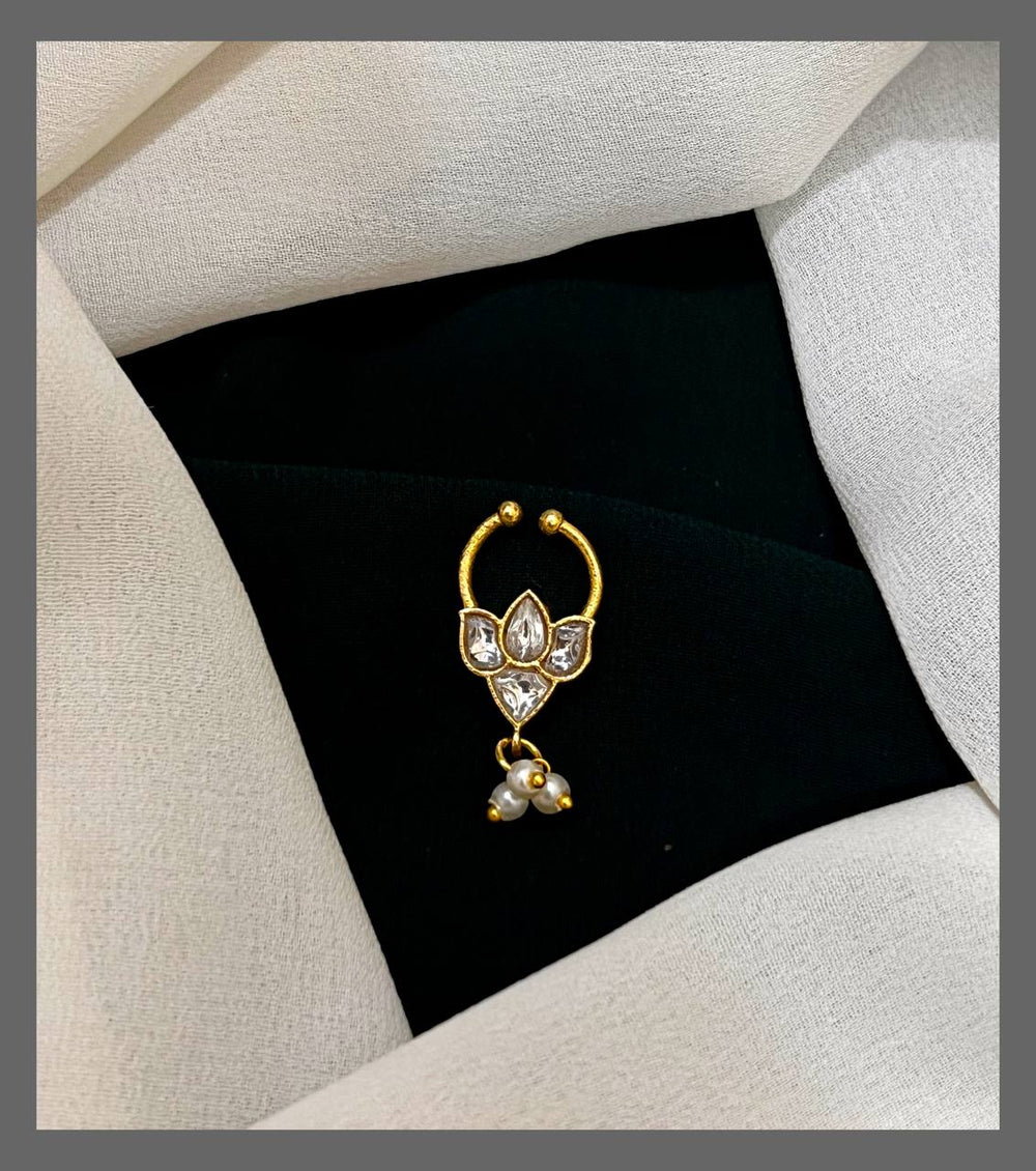Embrace elegance with the Lotus Septum Nose Ring in Kundan, designed to add a unique traditional touch to your style. Crafted with intricate kundan work, this nose ring offers a delicate yet striking look that complements both casual and festive attire. Its lightweight design ensures comfortable wear throughout the day, making it a perfect accessory for those who appreciate subtle sophistication. Elevate your jewelry collection with this beautiful piece that celebrates cultural artistry and personal expression.