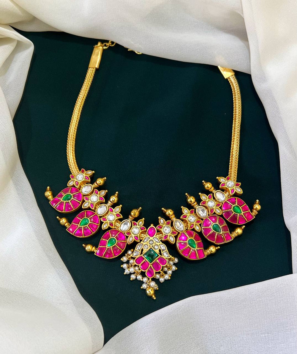 Elevate your accessory collection with this exquisite Mango Jadau Kundan Necklace adorned with intricate JADAV KUNDAN workmanship. This stunning piece combines elegance and tradition, making it a perfect addition to any outfit, whether for a special occasion or everyday wear.