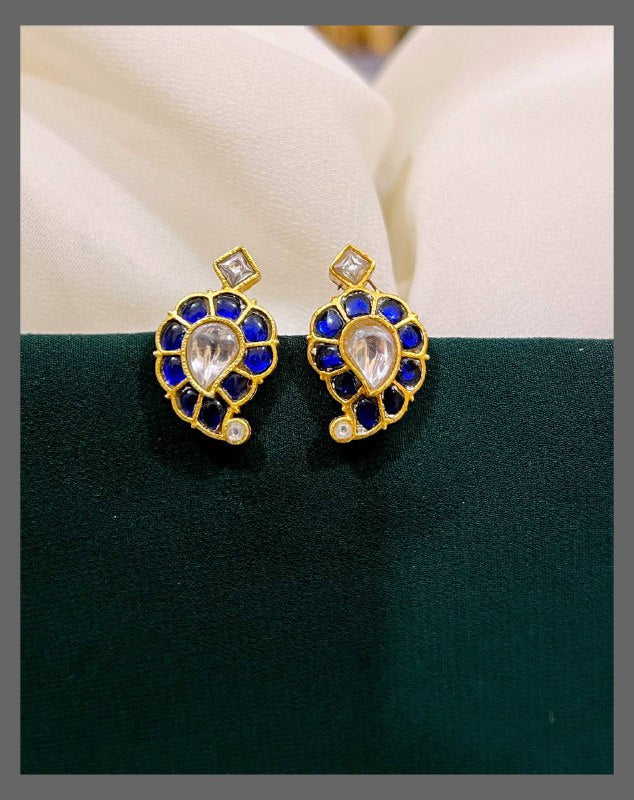 These Mango Stud earrings in Kundan craftsmanship offer a delicate blend of traditional elegance and modern charm. Perfect for adding a subtle sparkle to your everyday look or complementing festive attire, they provide a comfortable fit and timeless style that enhances any outfit with grace.