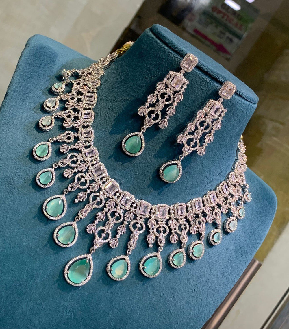 Beautiful Daimond finish Leaf pattern necklace with Mint stone