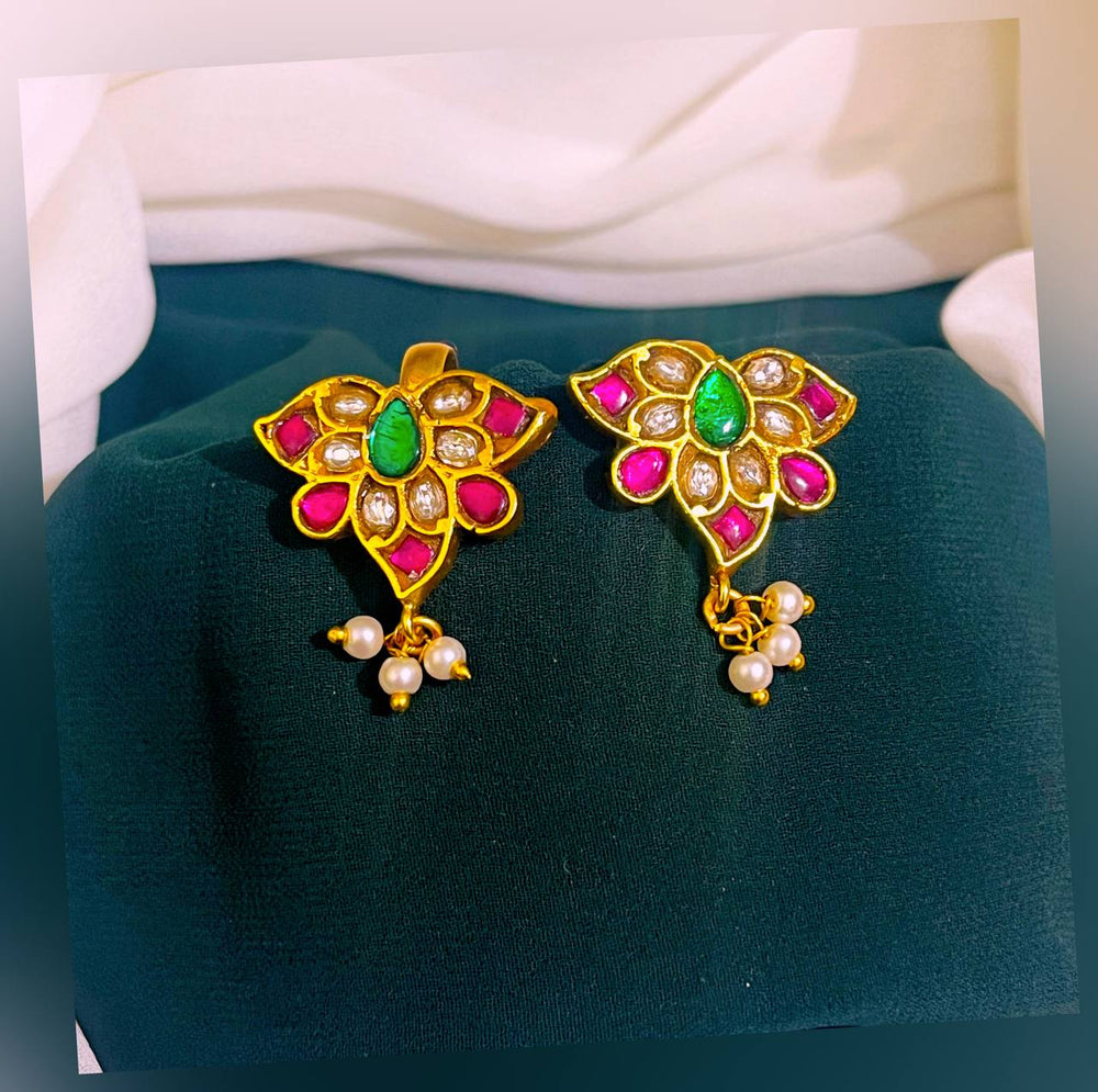 Expertly handcrafted with stunning multi-colored jadau beads, this Bugadi (arm cuff) is a must-have for any traditional Indian attire. Enhance your look with the sparkling hues and intricate designs, perfect for special occasions and weddings. Elevate your style with this beautiful bugadi.