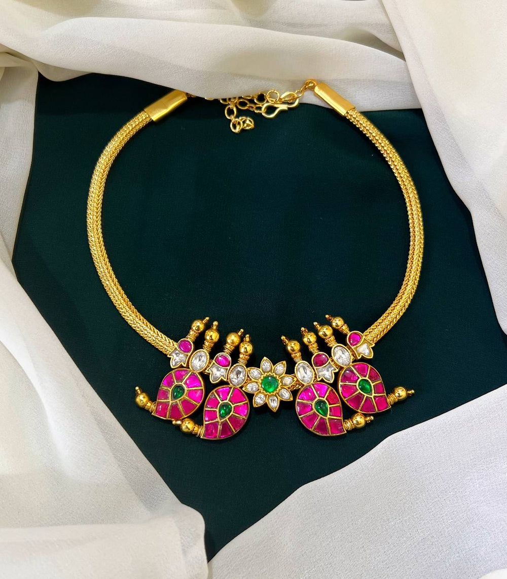 Elevate your accessory collection with this exquisite Multi Color Mango with Flower Jadau Kundan Necklace adorned with intricate JADAV KUNDAN workmanship. This stunning piece combines elegance and tradition, making it a perfect addition to any outfit, whether for a special occasion or everyday wear.