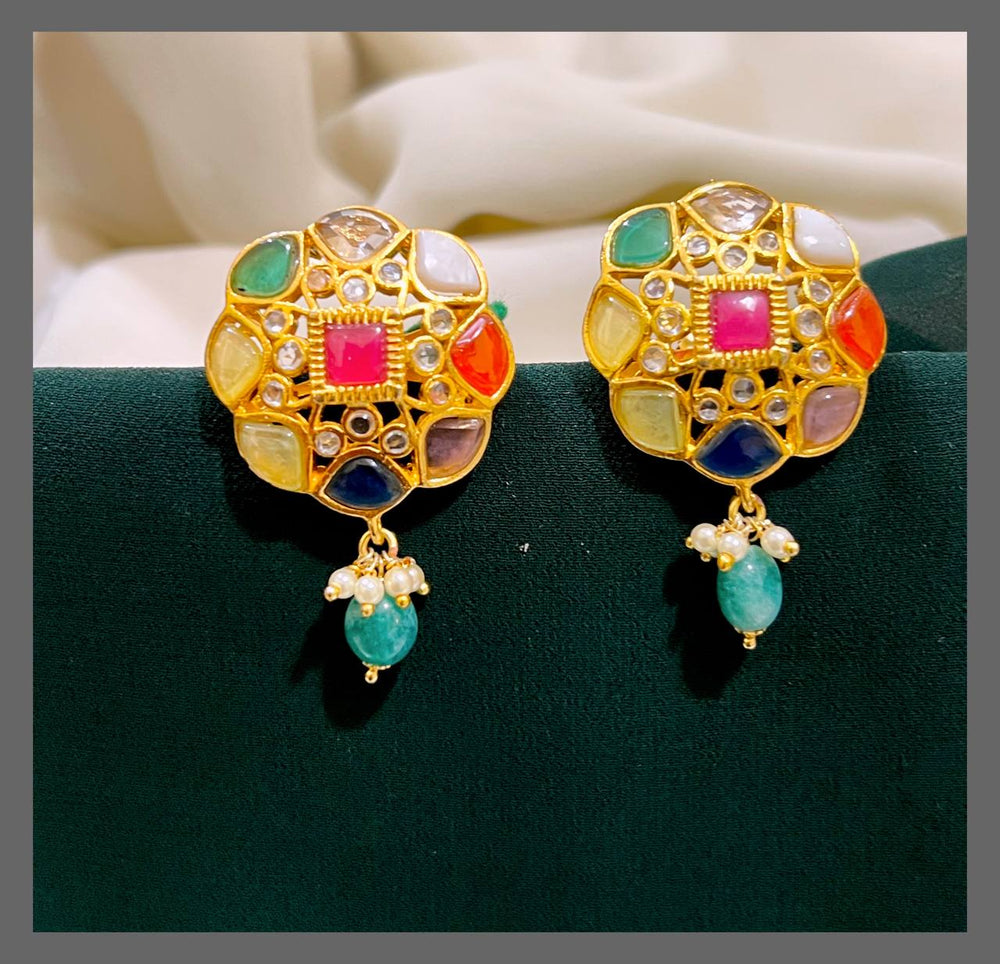 Add a splash of vibrant elegance to your look with these Multi Color Stud Earrings in Kundan. Expertly crafted, each earring features a dazzling arrangement of colorful stones set in traditional Kundan style, offering a perfect blend of classic charm and modern flair. Lightweight and comfortable, they brighten any outfit and occasion. These studs make a thoughtful gift or a stunning addition to your own jewelry collection, enhancing your style with grace and color.