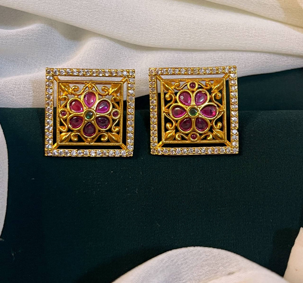 Beautiful Multi color with White Stone Nakshi Earring-Back Button