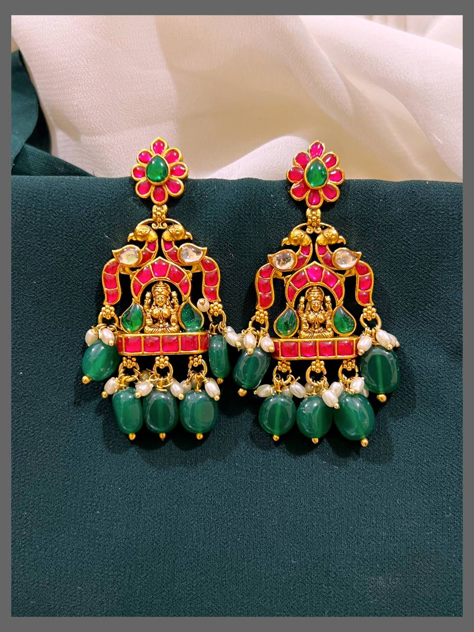 Celebrate timeless elegance with these Multi Flower Lakshmi Earrings in Kundan. Expertly crafted, they feature intricate floral designs surrounding the auspicious Lakshmi motif, symbolizing prosperity and grace. The Kundan setting adds a traditional charm while ensuring a comfortable fit for daily wear or special occasions. These earrings bring a touch of cultural richness and beauty to any outfit, making them a meaningful addition to your jewelry collection.
