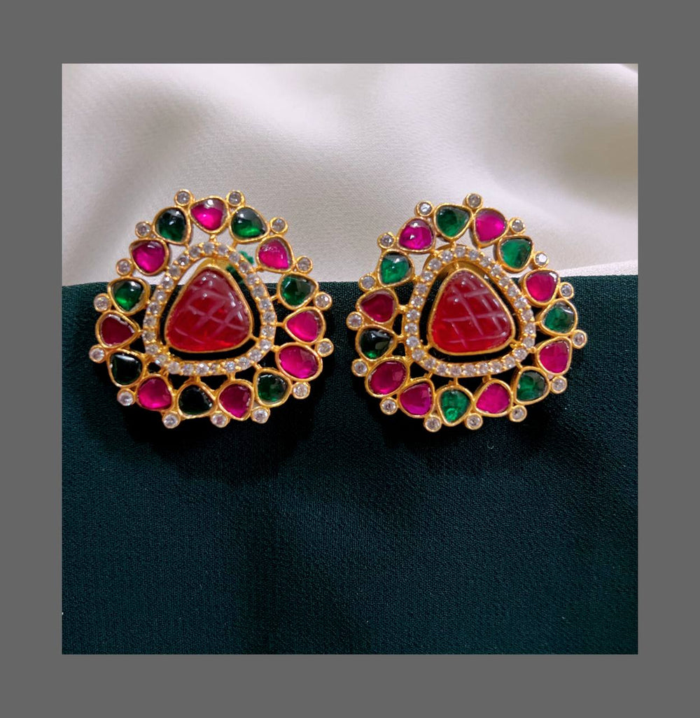 Elevate your traditional attire with these exquisite Multi Stud Earrings in Kundan. Meticulously crafted with authentic Kundan work, these earrings feature multiple studs arranged in a harmonious pattern that captures light beautifully. The intricate detailing and premium finish make them perfect for weddings, festivals, and special occasions where you desire to make a sophisticated statement.