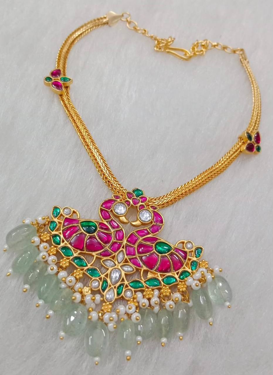 This beautiful Multi Swan Pendent in Kundan Necklace - KN00157 is a must-have for any jewelry collection. Featuring stunning Kundan detailing and multiple swan pendants, this necklace exudes elegance and sophistication. Add a touch of royalty to any outfit with this exquisite piece.