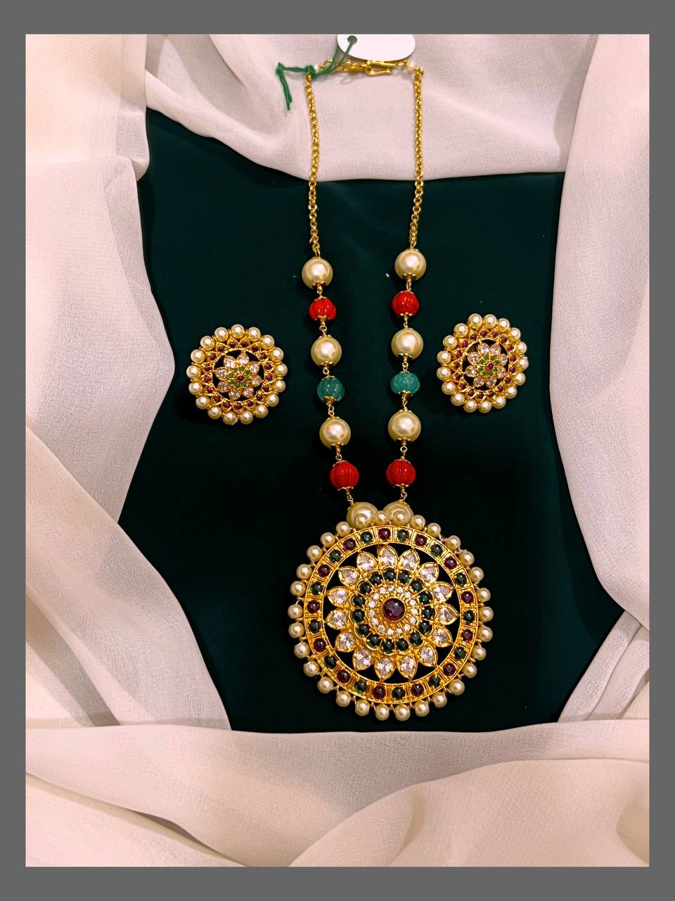 Add a vibrant touch to your collection with this Multicolour Beads necklace featuring a delicate Nakshi pendant. The rich blend of colors complements the intricate craftsmanship of the pendant, creating a unique accessory that enhances any outfit. Perfect for everyday wear or special occasions, it offers both style and cultural charm effortlessly.