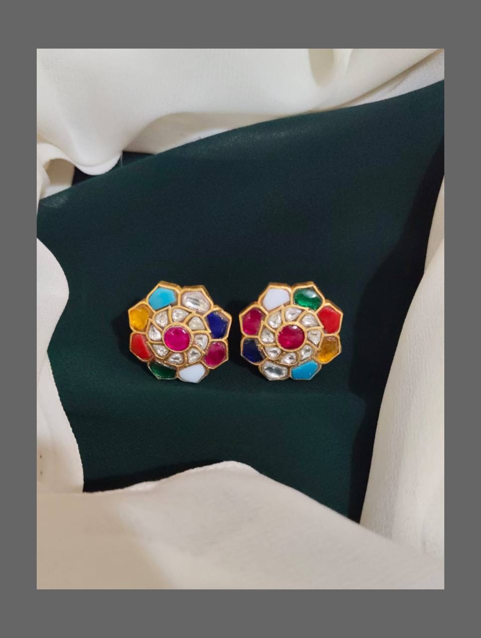 These beautiful Navaratna screw back studs are crafted to perfection. Made with genuine stones, they offer an exclusive design and excellent craftsmanship. With a secure screw back closure, these studs offer both style and comfort. Elevate any outfit with these exquisite studs.