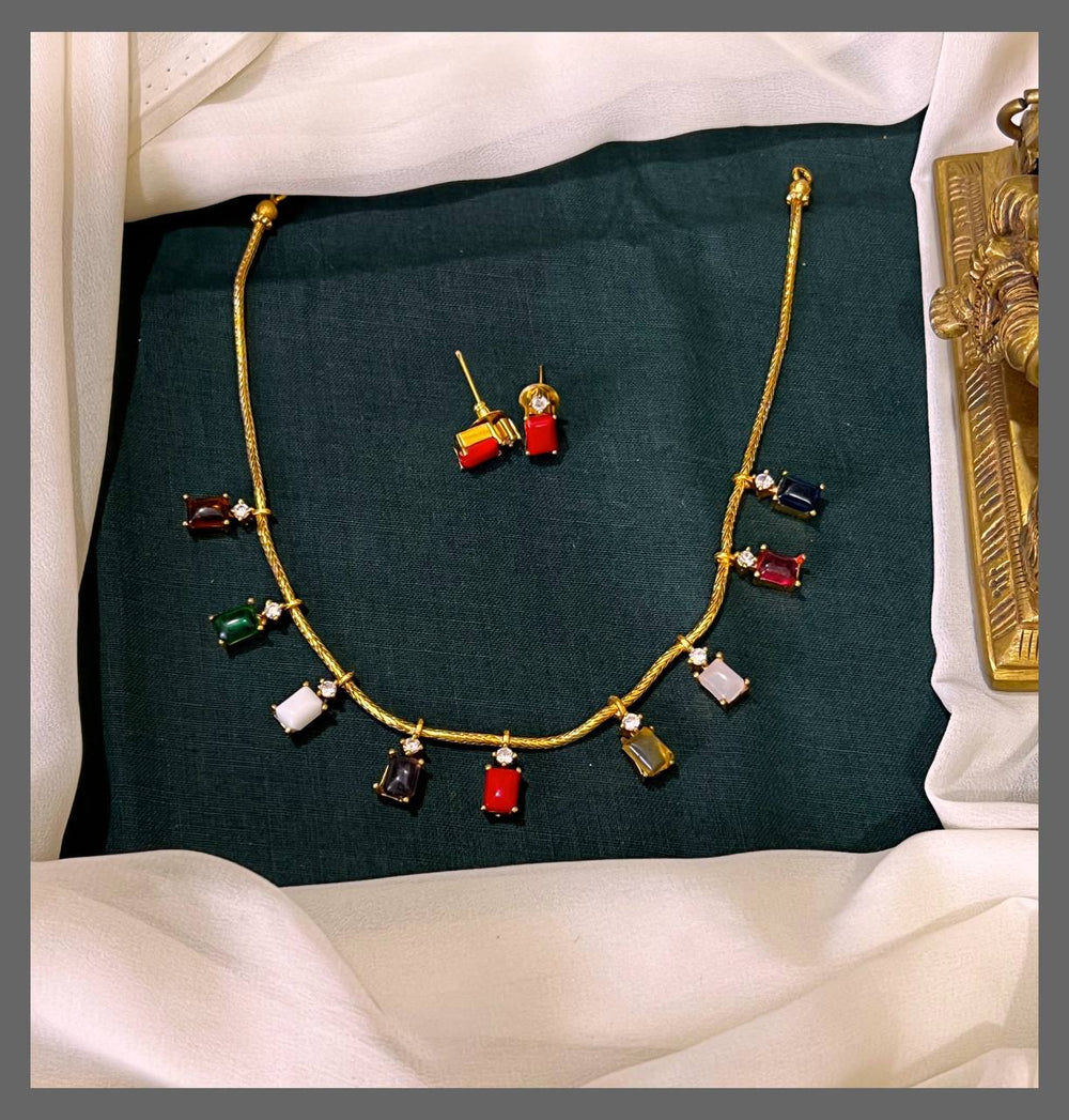 This Navratan Small Pendant with Chain in Nakshi design combines traditional elegance with everyday charm. Its intricate craftsmanship highlights the beauty of nine vibrant gems, offering not only a stunning accessory but also a symbol of positivity and balance. Lightweight and versatile, it’s perfect for adding a touch of grace to any outfit, making it an ideal choice for daily wear or special occasions.