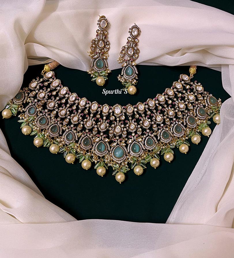 Features: Color: Emerald Style: Victorian Pendant Material: Brass, American Diamond Earrings: Yes Experience: Lightweight and comfortable to wear Usage: Great for an everyday celebration
