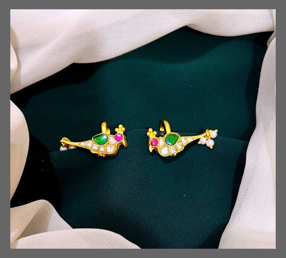 Discover the elegance of the Parrot Bugadi in kundan, a beautifully crafted piece that adds a touch of traditional charm to your collection. Its intricate kundan work highlights the delicate design, making it perfect for special occasions or daily wear. This accessory combines timeless artistry with comfort, supporting your style with grace and sophistication.