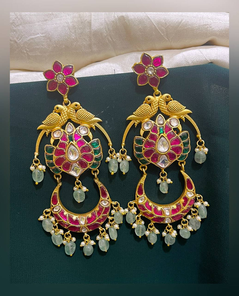 This Parrot Double Hanging Earring in Kundan - KE00141 is expertly crafted with intricate details and a stunning design. Made of high-quality Kundan, these earrings are perfect for adding a touch of elegance to any outfit. The double hanging design adds a unique and eye-catching element, making these earrings a must-have for any jewelry collection.