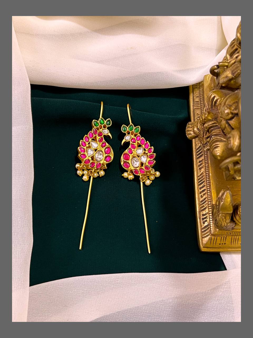 Celebrate tradition with the Peacock Bugadi - BU00137, a beautifully crafted piece that adds a touch of elegance to your collection. Its intricate design captures the grace of the peacock, symbolizing beauty and pride. Perfect for special occasions, this jewel enhances your outfit while offering a meaningful connection to cultural heritage. Embrace its charm and let it support your style with timeless sophistication.