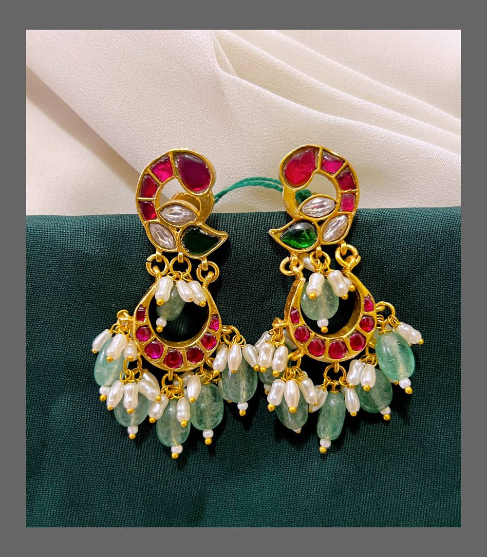These Peacock Hugging Earrings in Kundan craftsmanship showcase intricate detailing with vibrant colors and traditional charm. Designed to hug the earlobe comfortably, they combine elegance with a secure fit for everyday wear or special occasions. Their timeless design adds a graceful touch to any outfit, offering a perfect blend of style and cultural heritage.