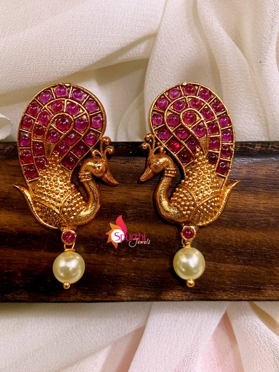 Beautiful Peacock in Ruby Nakshi Earring , Back Button
