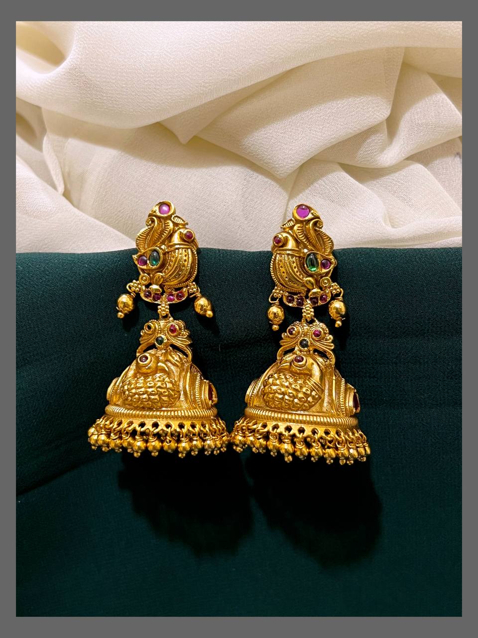 Enhance your traditional look with the Peacock Jhumki Earring Nakshi - NE00346. Featuring intricate peacock-inspired detailing, these earrings add an elegant charm to any outfit. Lightweight and comfortable, they are perfect for festivals or special occasions, bringing a touch of timeless beauty to your jewelry collection.