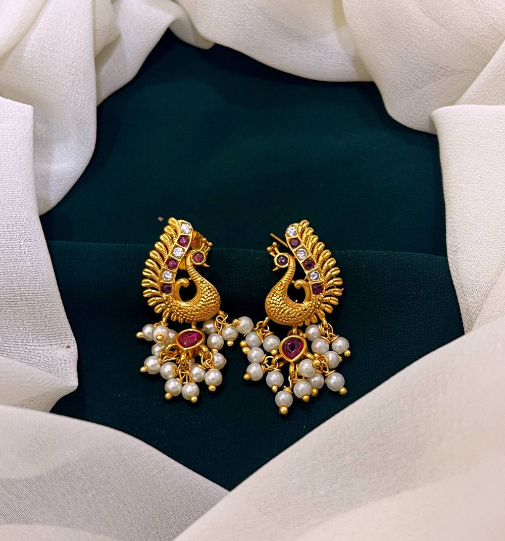Beautiful Peacock with Ruby Gold with White Stone Nakshi Earring,
