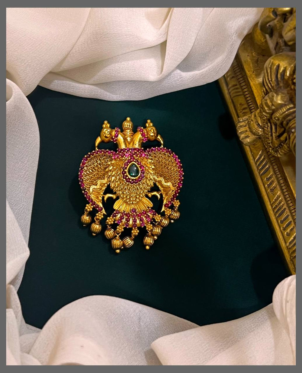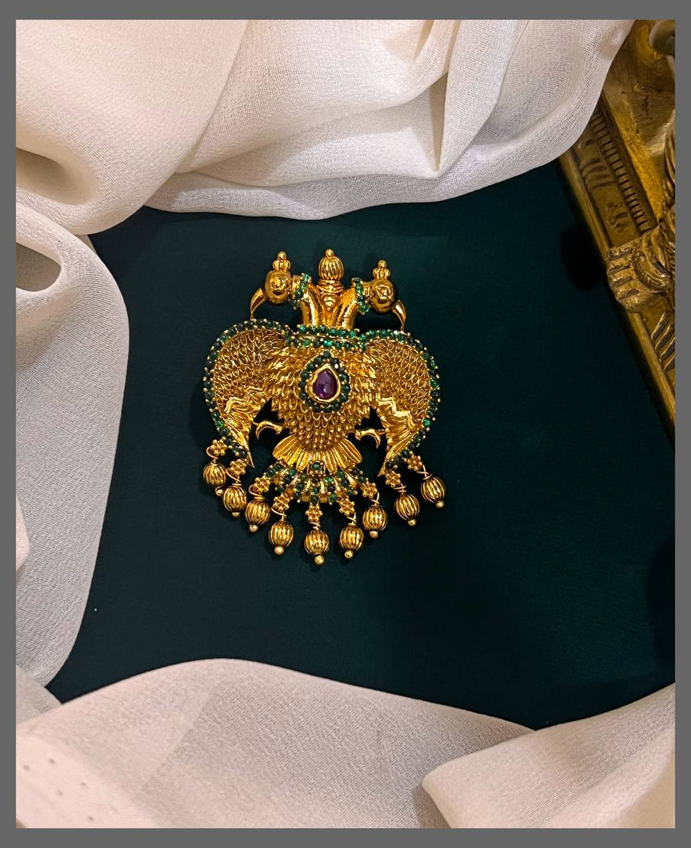 Elevate your accessory collection with this exquisite Peafowls Pendent in Kundan adorned . This stunning piece combines elegance and tradition, making it a perfect addition to any outfit, whether for a special occasion or everyday wear.