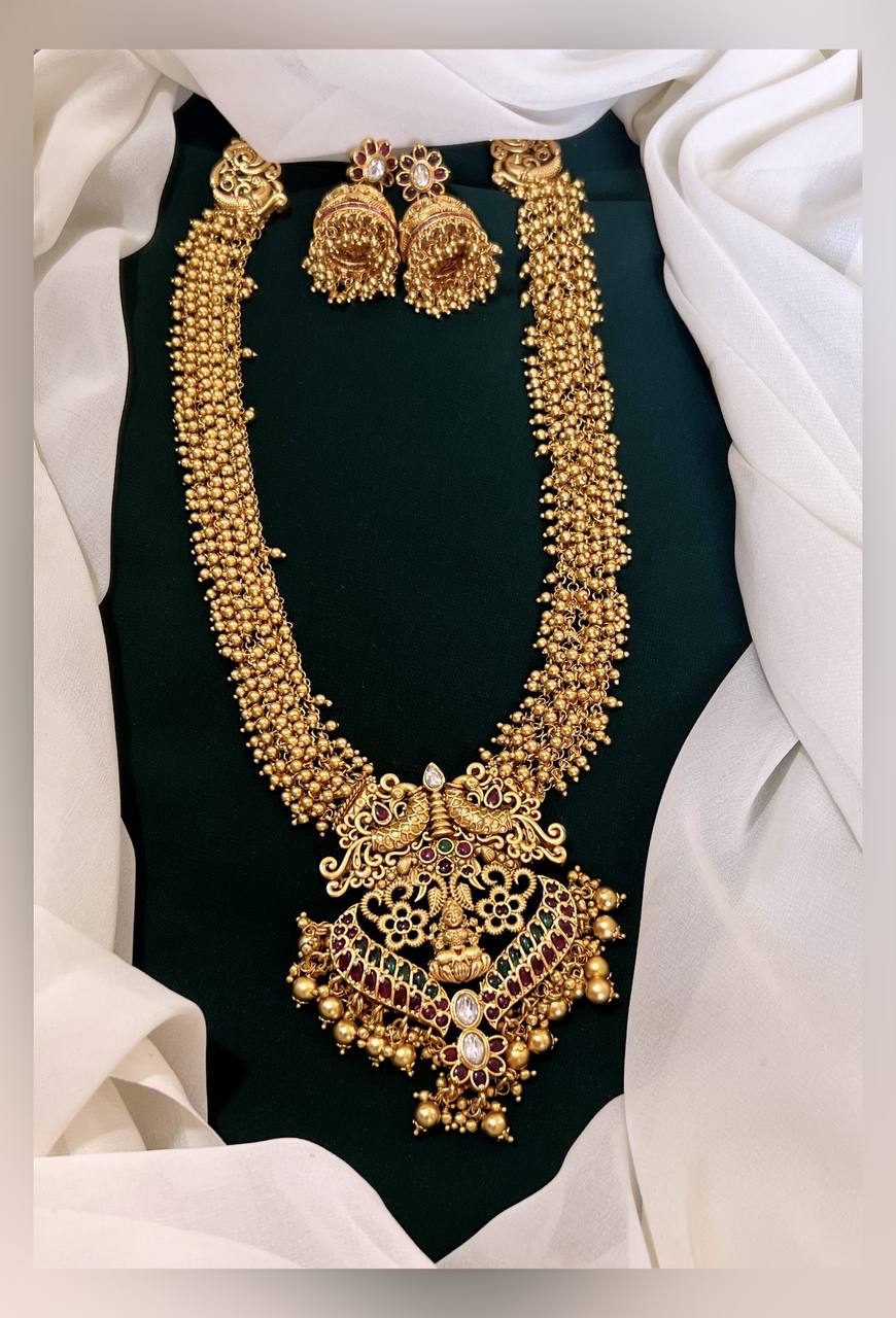 Adorn yourself with this exquisite Pearl Haram featuring a stunning Nakshi pendant. The traditional Nakshi workmanship showcases intricate craftsmanship, while the lustrous pearls add timeless elegance. Perfect for special occasions and festivals, this haram beautifully complements both traditional and contemporary attire, making you feel radiant and confident.