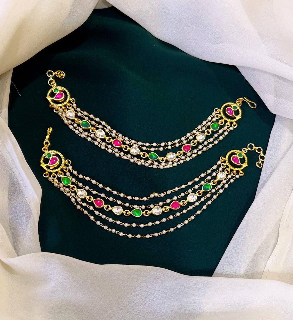 Beautiful Jadau stone and 4 lines pearl maatilu in antique finish