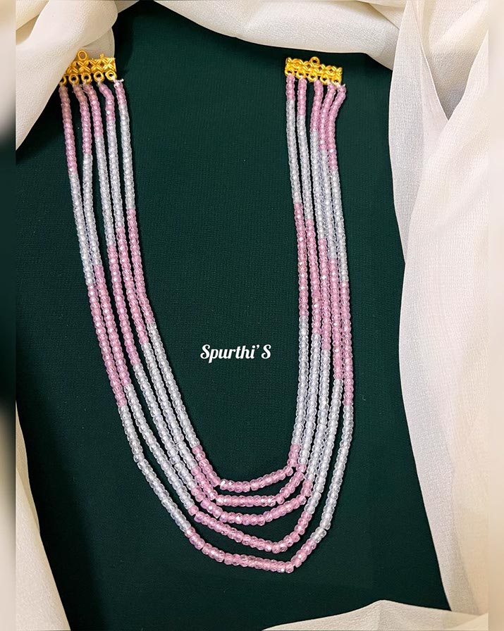 Pink CZ Beads Necklace Color: Pink, White Style: CZ Necklace Material: CZ Beads Earrings: No Experience: Lightweight and comfortable to wear Usage: Everyday Celebration, Traditional Function, Party