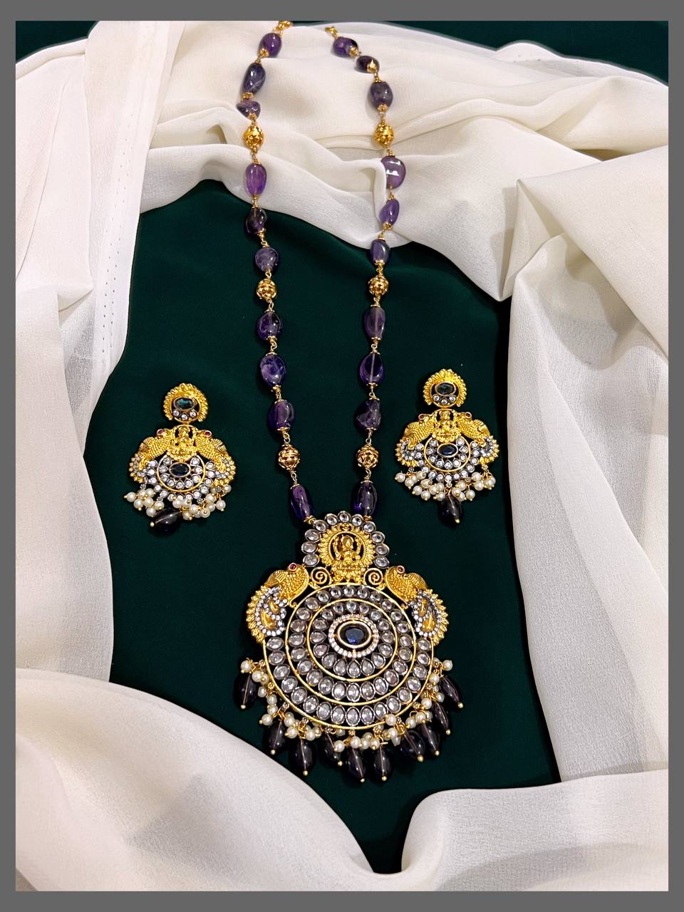 Enhance your collection with this elegant Purple Beads necklace featuring a beautifully crafted Nakshi pendant. The rich purple beads add a touch of sophistication, while the intricate pendant design brings a traditional charm. Perfect for both casual and festive occasions, this piece offers a graceful accent to your outfit, making you feel confident and stylish every time you wear it.
