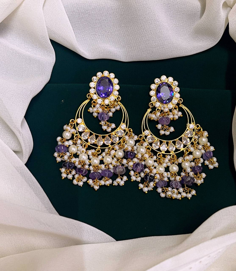 Beautiful Purple Chand Bali Kundan, Back Screw