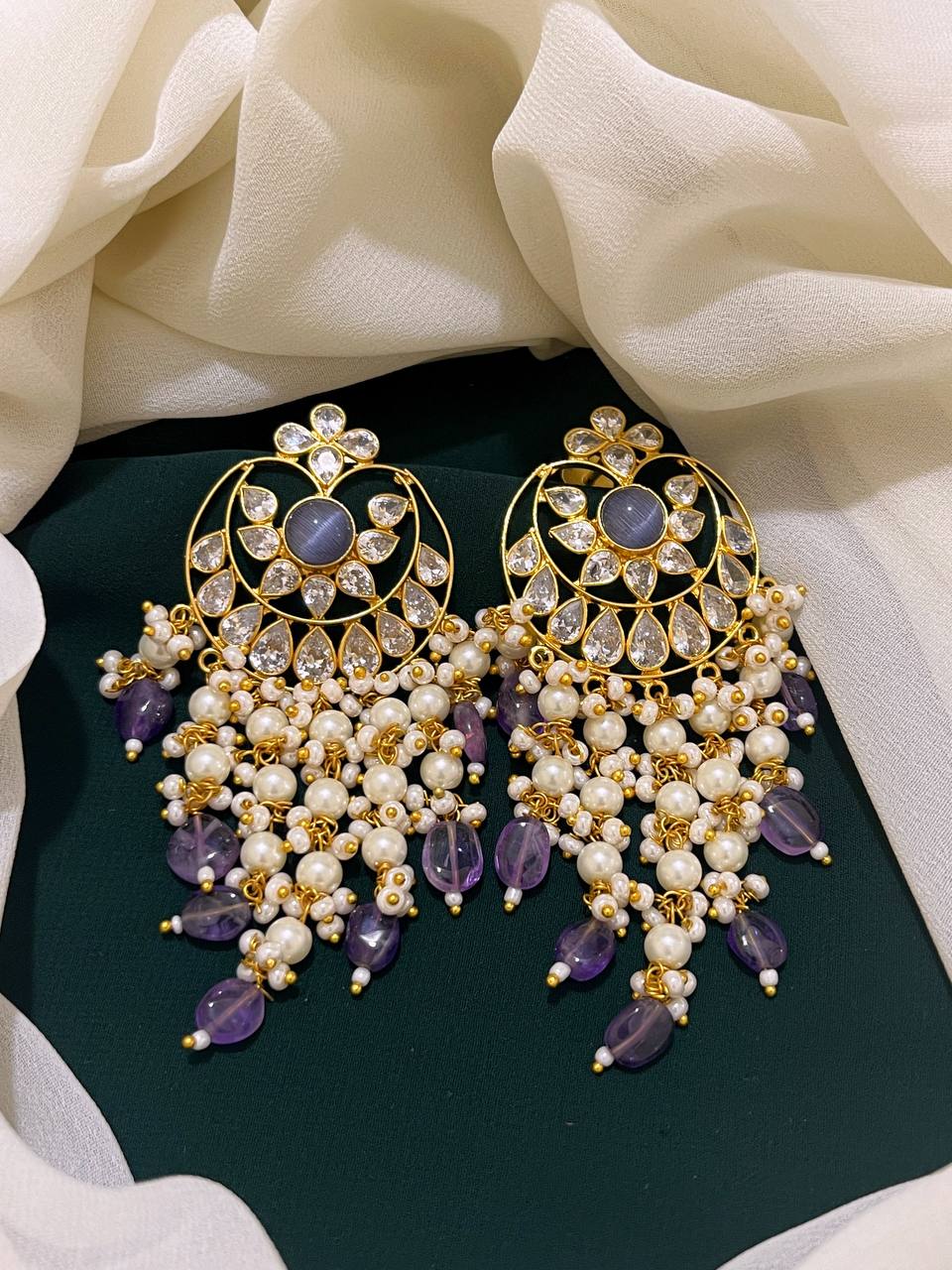 Beautiful Purple Chand Bali Kundan, Back Screw