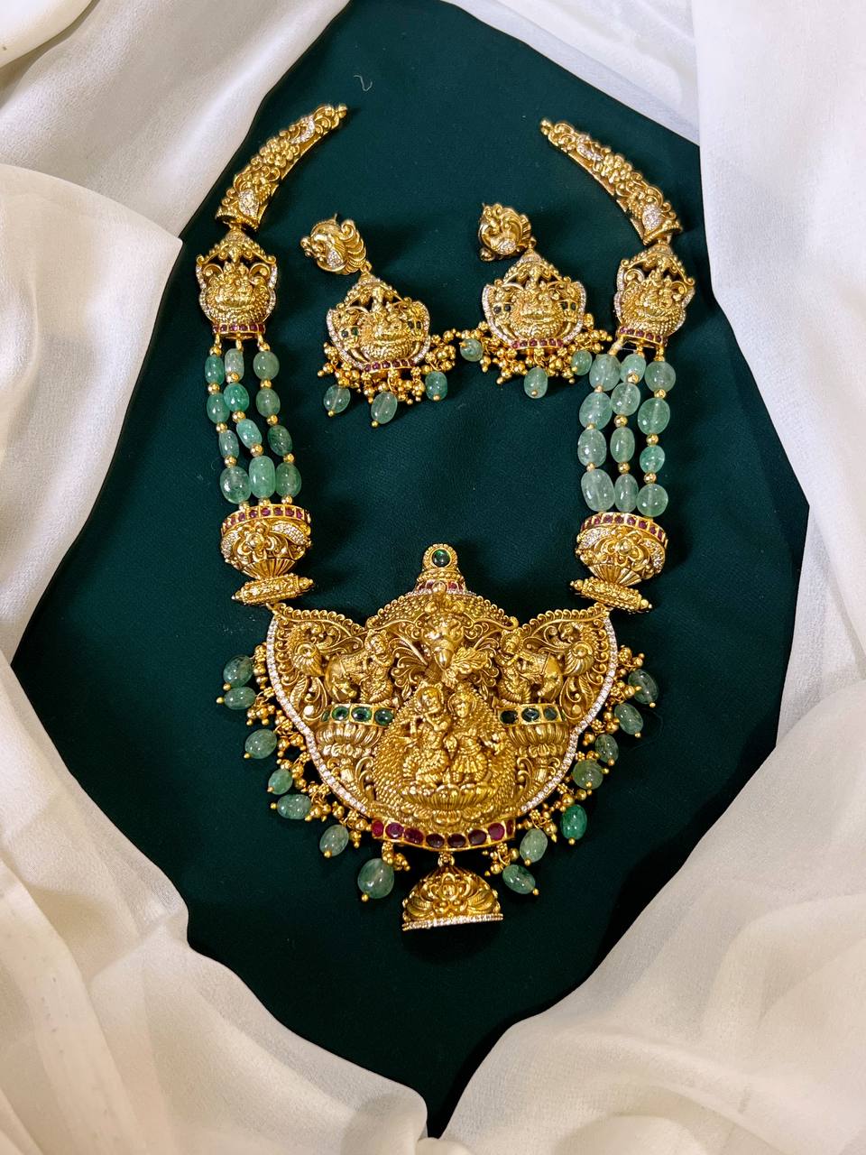 Elevate your accessory collection with this exquisite Radha Krishna in Nakshi Haram with Earring adorned with intricate NAKSHI craftsmanship. This stunning piece combines elegance and tradition, making it a perfect addition to any outfit, whether for a special occasion or everyday wear.