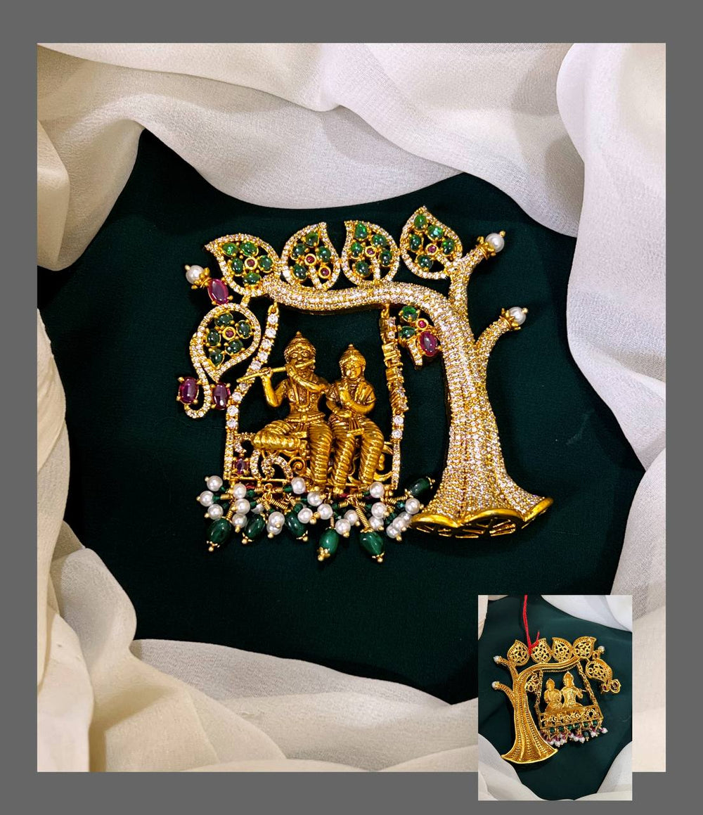 This Radha Krishna pendant in Nakshi design beautifully captures the divine bond with intricate craftsmanship. Made to wear close to your heart, it symbolizes love, devotion, and spirituality, making it perfect for daily wear or special occasions. Its detailed artistry enhances traditional elegance while offering a timeless piece that supports your personal expression of faith and admiration.