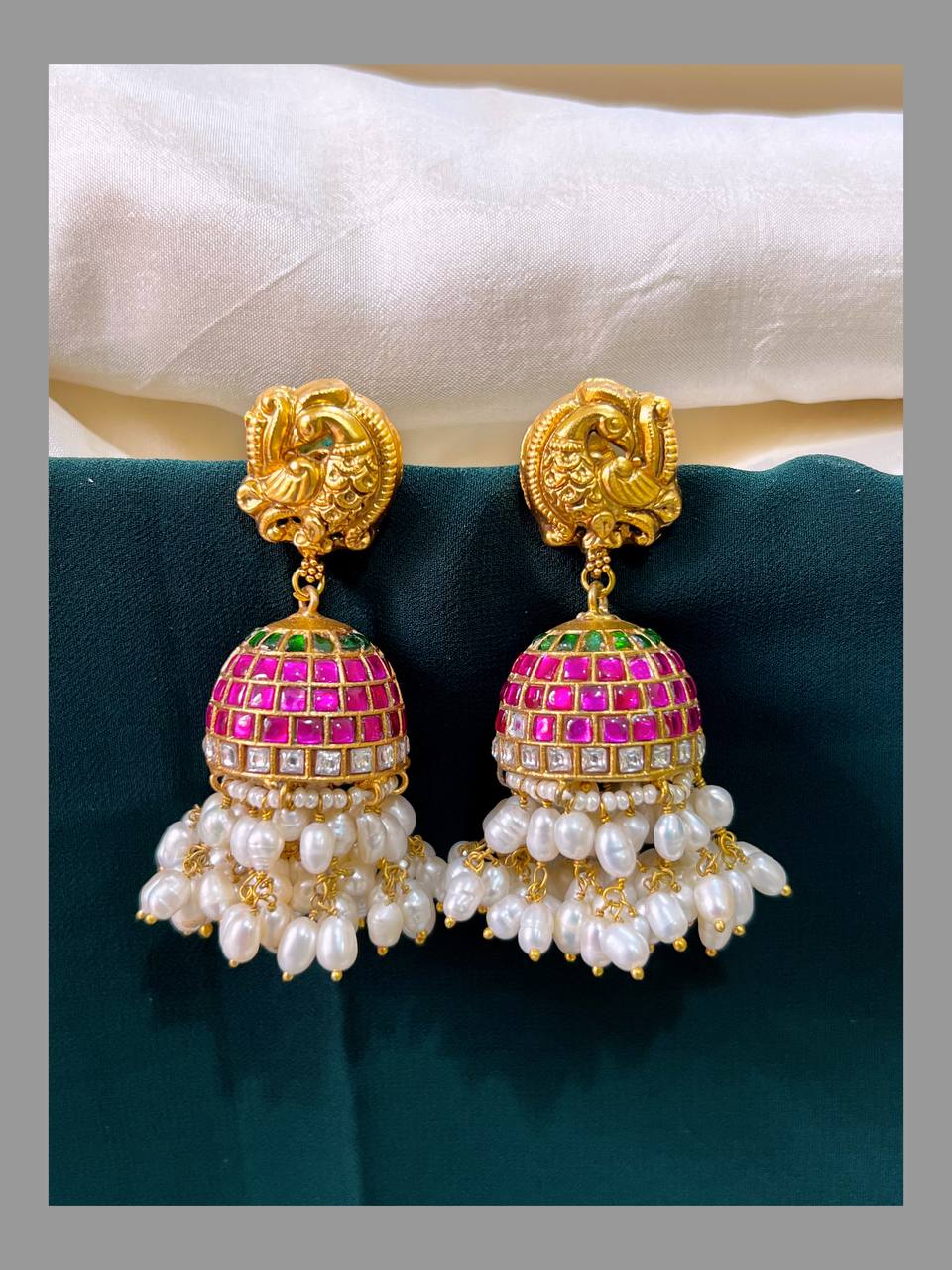 Expertly handcrafted, this Rice pearl Jimikki in Kundan (KE00169) is a stunning piece of jewelry. The intricate design of Kundan paired with the delicate rice pearls creates a timeless and elegant look. Add a touch of sophistication to any outfit with this piece.
