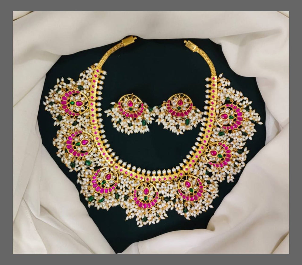 Elevate your style with our Rice Pearl Multi color Kundan Necklace - KN00199. This stunning piece features intricately crafted Kundan and vibrant rice pearls for an elegant and luxurious look. With its multi-color design, this necklace will effortlessly elevate any outfit. Add a touch of sophistication to your wardrobe today.