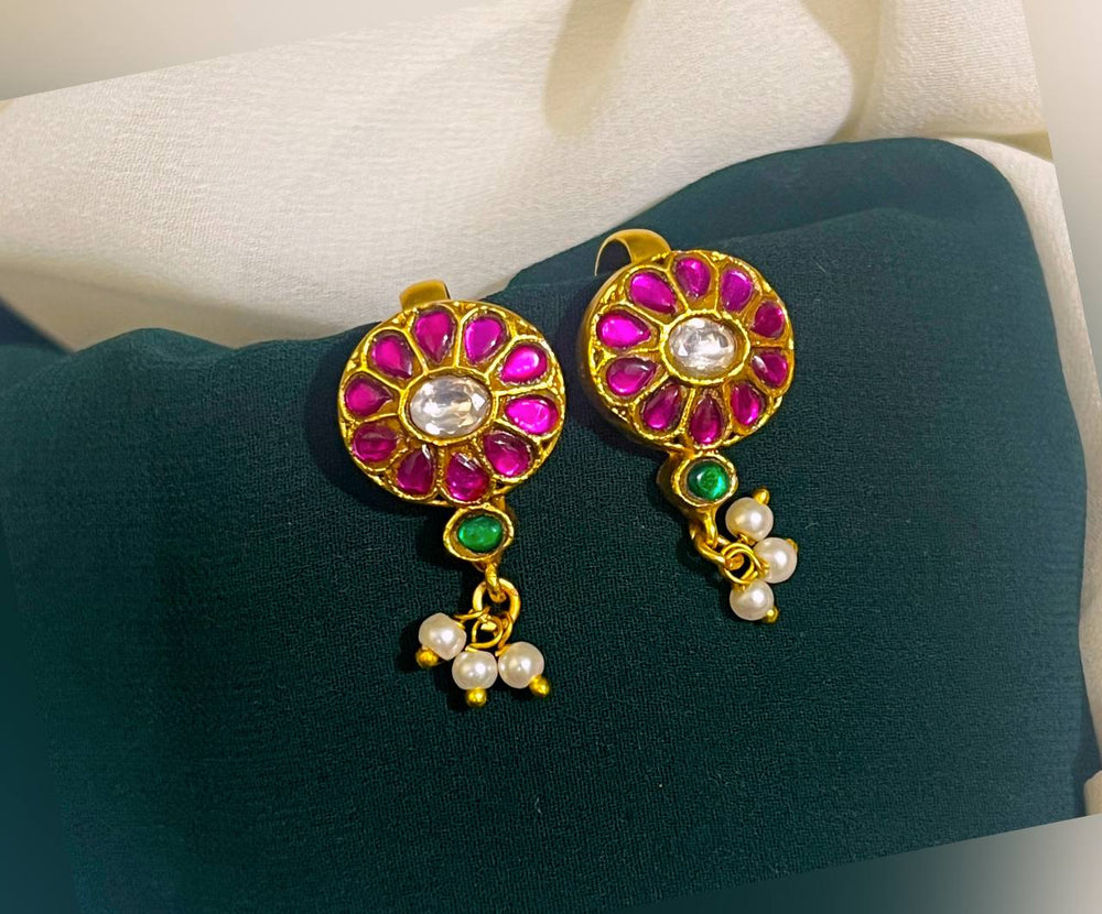 This Round Pattern Multi Jadau Bugadi - BU004 features stunning and intricate round patterns, made with traditional Jadau craftsmanship. The burst of colors and intricate designs add a touch of elegance and heritage to any look. Handmade with precision and care, this piece is a must-have for any jewelry collection.