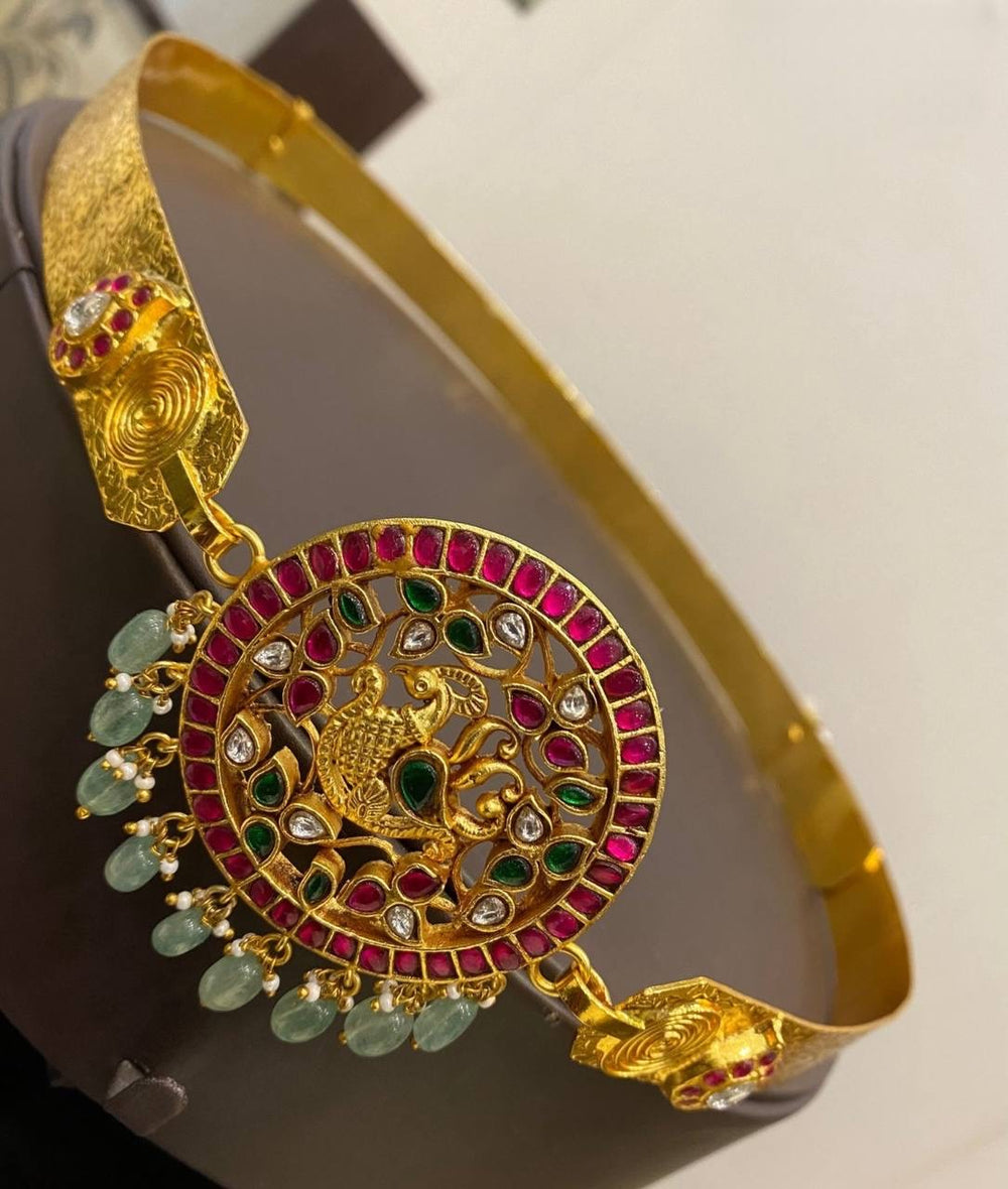 Elevate your accessory collection with this exquisite in Ruby and Emerald Waist belt Jadav Kundan adorned with intricate JADAV KUNDAN workmanship. This stunning piece combines elegance and tradition, making it a perfect addition to any outfit, whether for a special occasion or everyday wear.