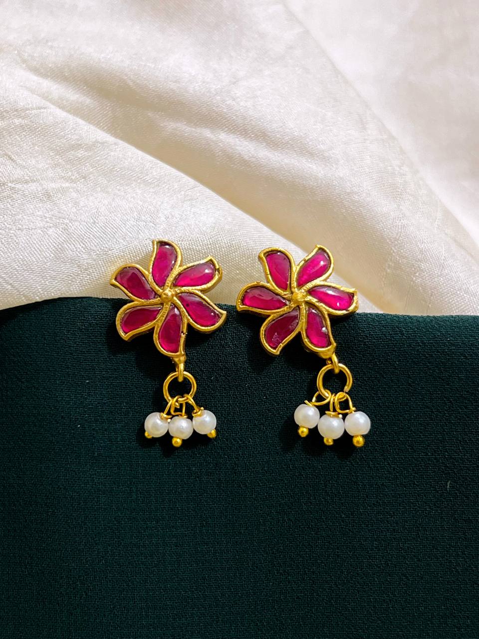 These stunning Kundan earrings feature a delicate ruby flower design, adding a touch of elegance to any outfit. Handcrafted with precision and attention to detail, the KE00123 is the perfect accessory for any occasion. Made with high quality materials, these earrings are both durable and stylish.