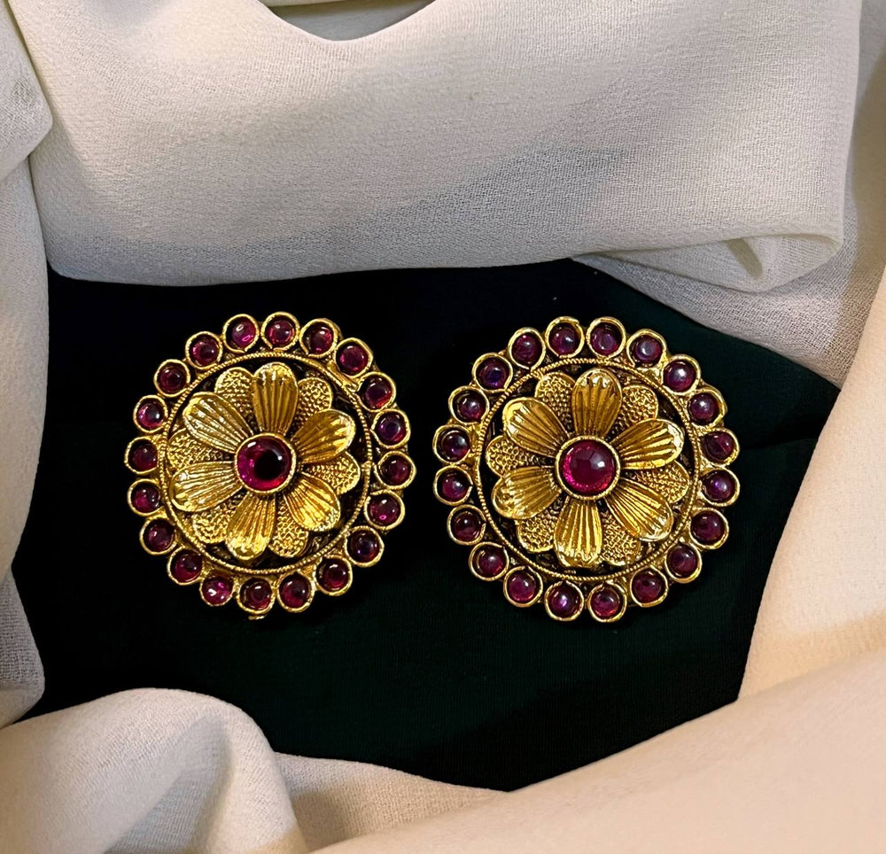 Beautiful Ruby Flower Nakshi Earring, Back Button