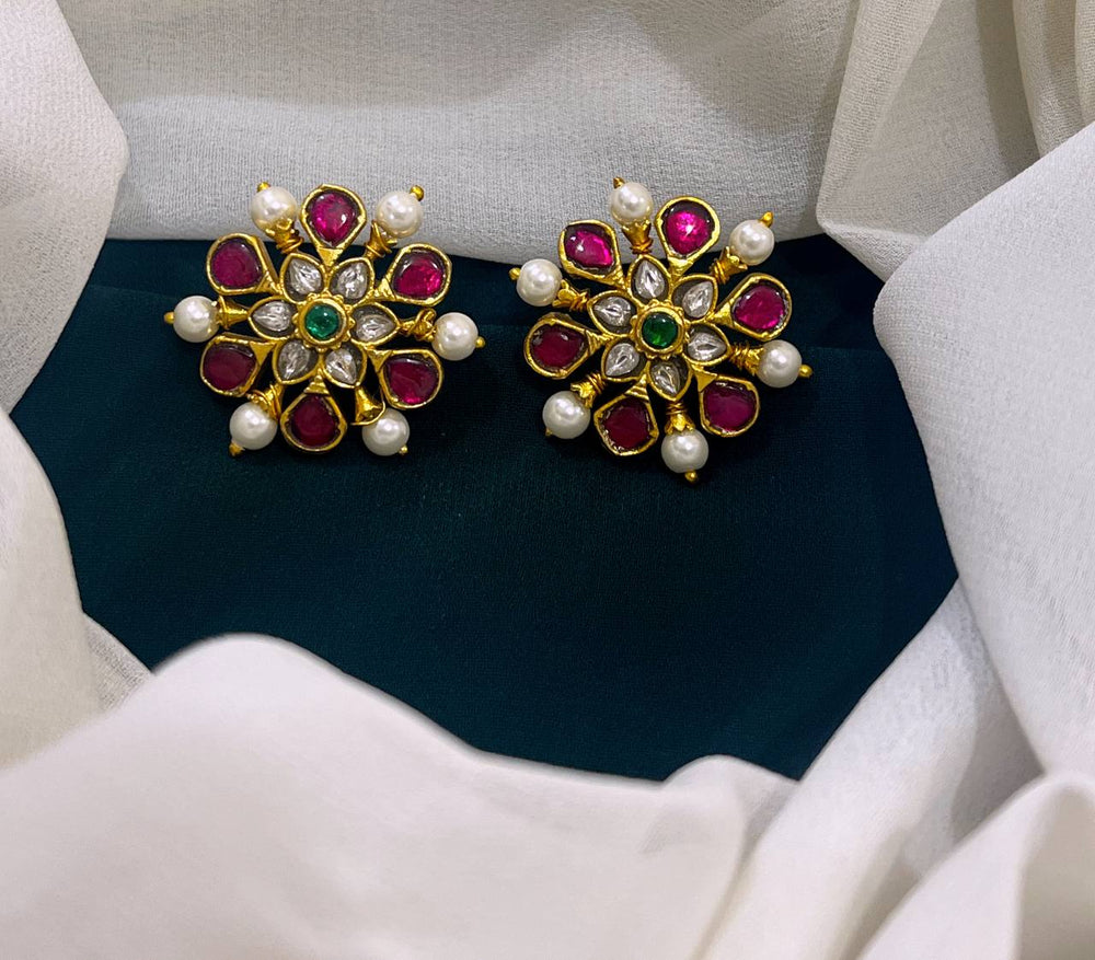 featuring exquisite Ruby gemstones and traditional Kundan setting. These studs come with a secure back screw for comfortable wear. Elevate any outfit with the radiant beauty and craftsmanship of these earrings.