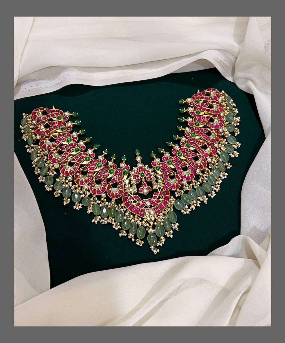 Add a splash of vibrant charm to your look with the Ruby Parrot Necklace in Kundan. This playful piece features a dazzling ruby centerpiece set in traditional Kundan craftsmanship, bringing a lively pop of color and elegance. Perfect for those who love to stand out with a touch of whimsy and timeless beauty.