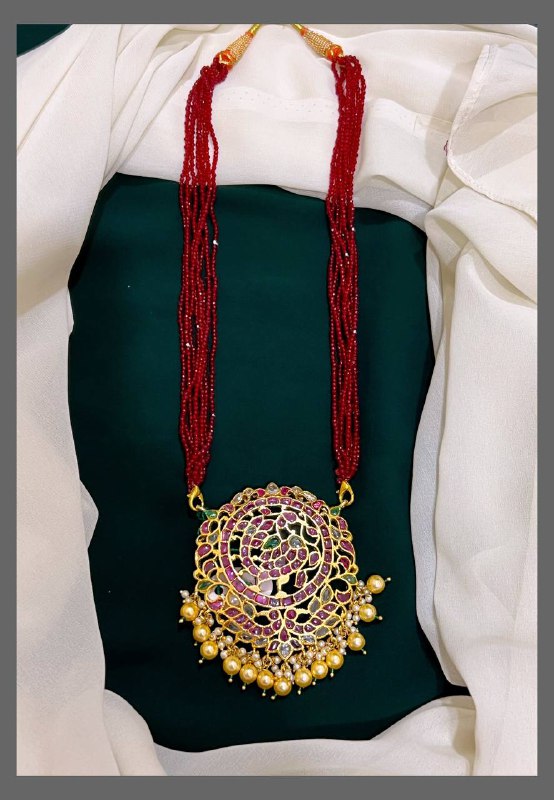 This exquisite Ruby Pearl with Antique Pendant combines timeless elegance with a vintage charm. The rich ruby pearl centerpiece is beautifully complemented by the intricate antique design of the pendant, making it a perfect accessory to enhance your traditional and contemporary outfits alike. Crafted to add a touch of sophistication, this piece is ideal for special occasions or everyday grace. Embrace the blend of classic beauty and unique style with this stunning pendant.
