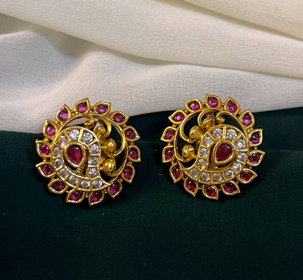 Beautiful Ruby with White Stone Mango Shape Nakshi Earring , Back Button