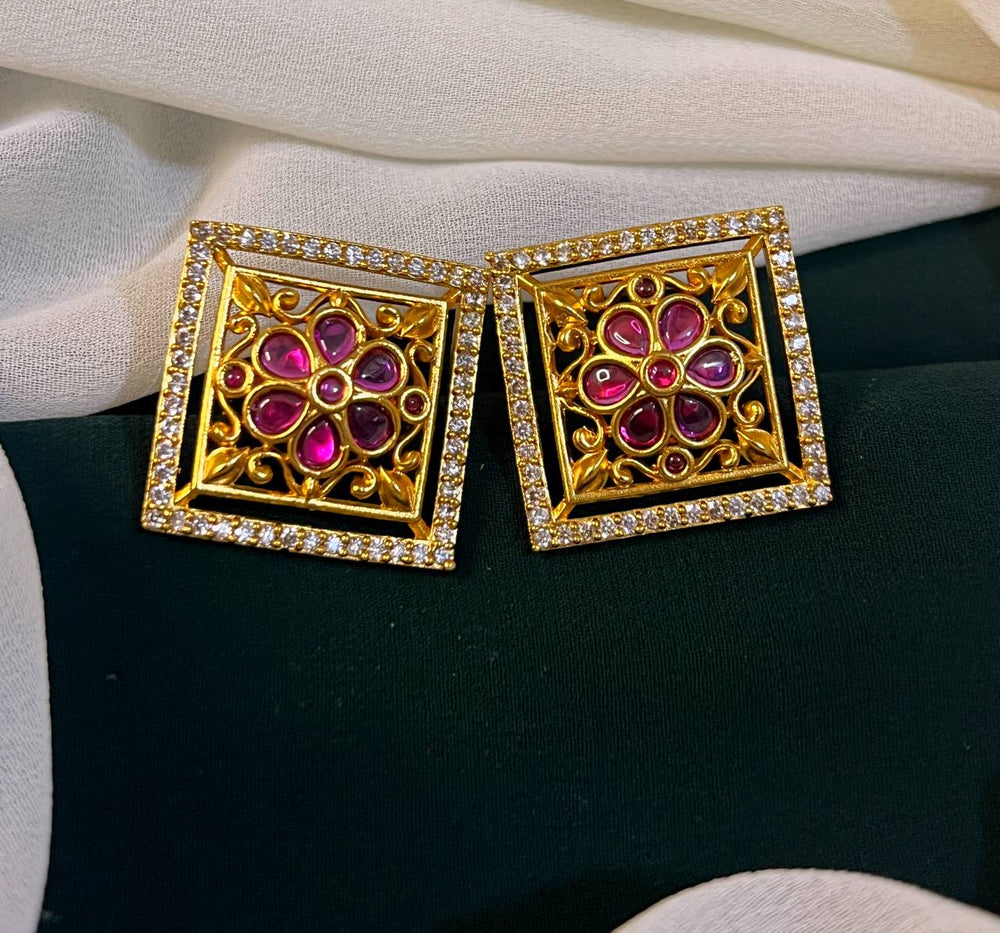 Beautiful Ruby with White Stone Nakshi Earring, Back Button