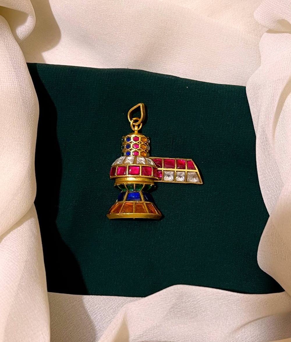 Celebrate your devotion with the Shivaling Pendant in Kundan, a timeless piece that combines spiritual significance with exquisite craftsmanship. This pendant features intricate Kundan work, highlighting the sacred symbol of Lord Shiva, making it a meaningful accessory for everyday wear or special occasions. Its elegant design offers both beauty and a gentle reminder of inner strength and peace. Perfect for those seeking a blend of tradition and style, this pendant supports your spiritual journey with grace and charm.