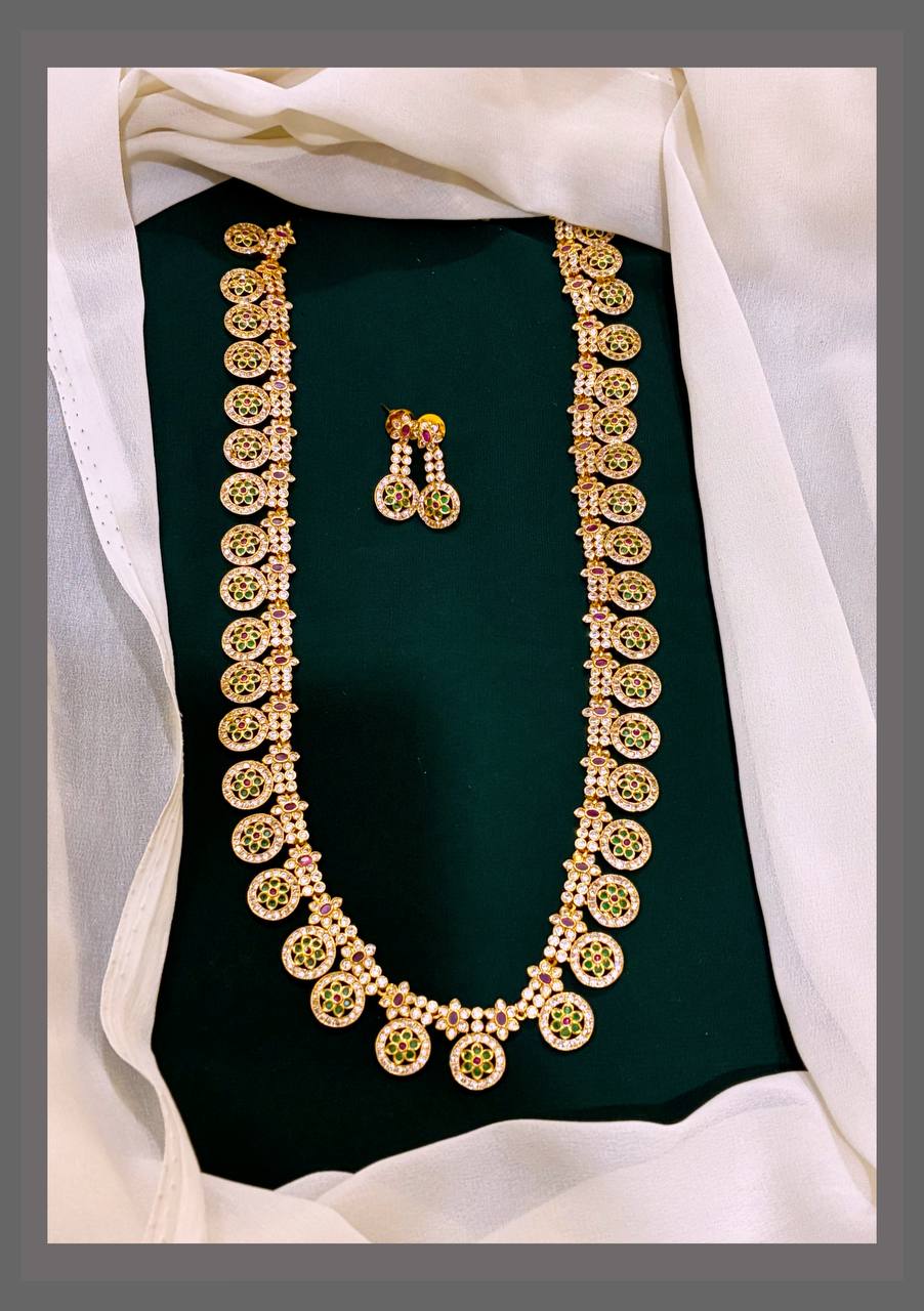 Add a touch of charm to your look with the Small Butto Malla Haram in Nakshi. This delicate necklace features intricate Nakshi craftsmanship, making it a perfect playful accessory for any occasion. Its lightweight design ensures comfort while adding a subtle sparkle to your style. Embrace elegance with a fun twist!