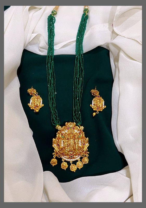 Enhance your traditional collection with this Small Green Pearl pendant featuring the Ramparivar design. Its delicate green pearls add a subtle charm, while the Ramparivar motif symbolizes devotion and family unity. Perfect for daily wear or special occasions, this pendant offers both elegance and meaningful cultural significance.
