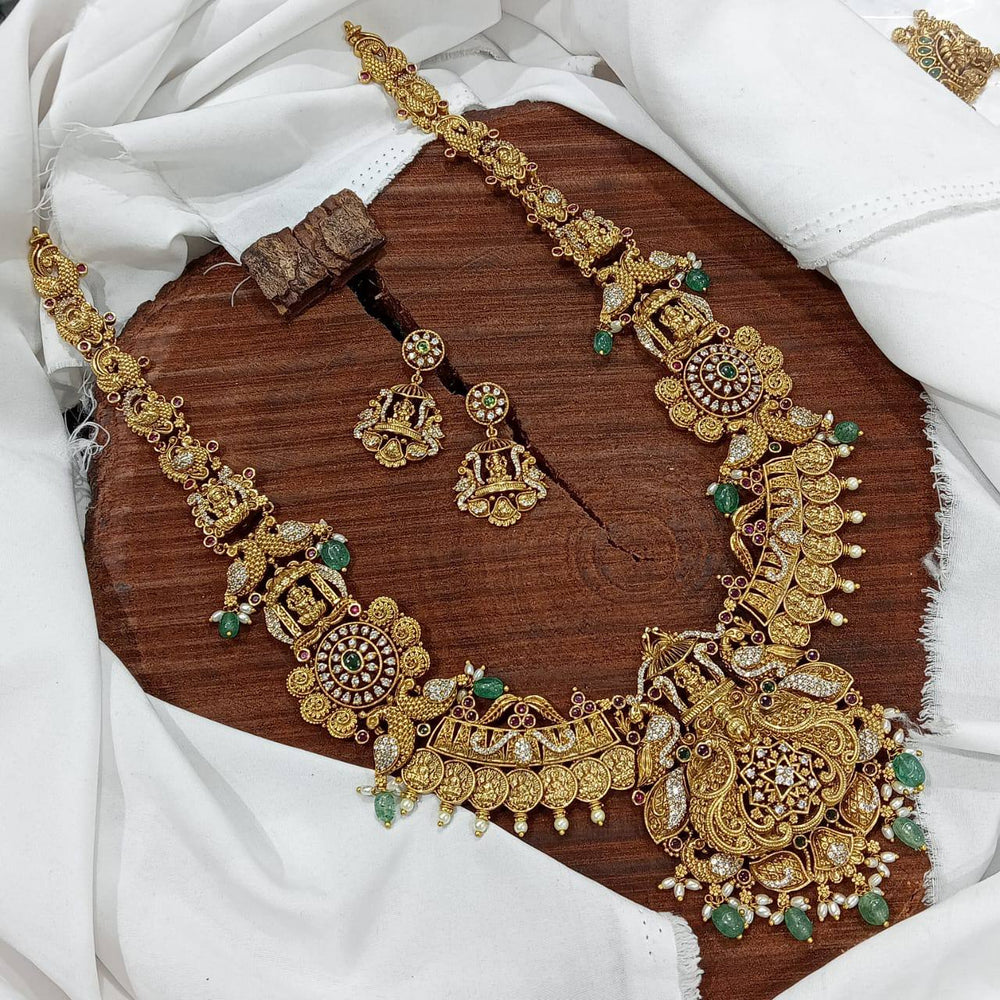 Elevate your accessory collection with this exquisite Nakshi Long haram with pair of earrings adorned with intricate NAKSHI craftsmanship.