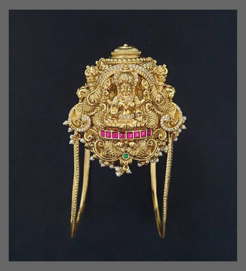 Embrace timeless elegance with the Traditional Lakshmi Vanki in Jadau. This intricately crafted armlet features exquisite Jadau work, showcasing the divine beauty of Goddess Lakshmi. Perfect for special occasions, it adds a touch of cultural heritage and grace to your attire, making you feel confident and cherished.